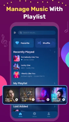 You can manage music, manage offline songs, manage music playlist in this music app: MP3 Music Player Free & MP3 Player Free.