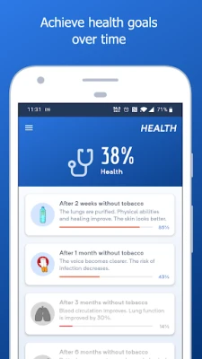 • Motivating statistics – Track money saved, cigarettes not smoked, life expectancy gained, and days tobacco-free.