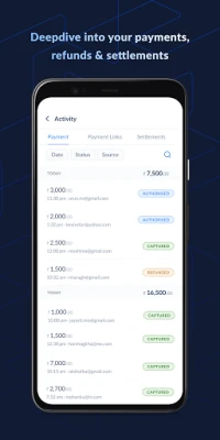 Analyze your earnings & stay on top of your goals. Make better business decisions using insights from the real-time data available on the dashboard. Get a detailed view of your payments, customer refunds, payment links view & settlements.