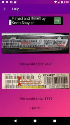 This application can provide you with the original manufacturer's security code required to activate your Renault car radio or CD player following a loss of power.