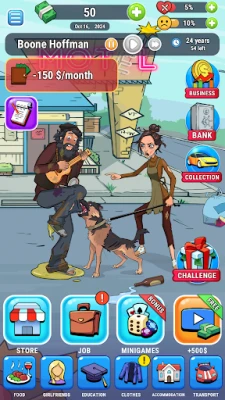 Move from streets to dorms. Then move to a small, but cozy apartment. In the future you will decide between a townhouse, villa or even a private island. Live the second life in luxury simulator!