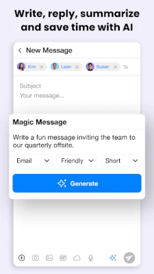 It replaces confusing threads and cluttered inboxes with a clean, conversational interface — a modern evolution of traditional email. Manage multiple accounts and team collaboration all from one place.