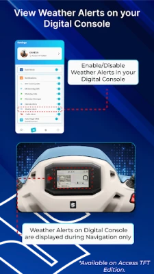 Suzuki Ride Connect has the following features: • Turn-by-Turn Navigation • Caller Notification • SMS Notification • WhatsApp Notification • Last Parked Location • And Several other features such as Trip Information, Customized Point of Interest like Parking lots, Puncture Shops, Fuel Stations etc.