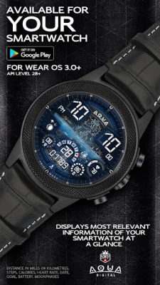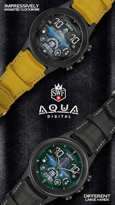 SWF Swiss Watch Faces are crafted and made in Switzerland and showing an very high grade of details. With it's clear and modern design, the SWF Aqua Digital edition is built to guide you through the time of each day. Admire the impressively animated clockwork in the background while in the foreground most smartwatch information are displayed at a glance.