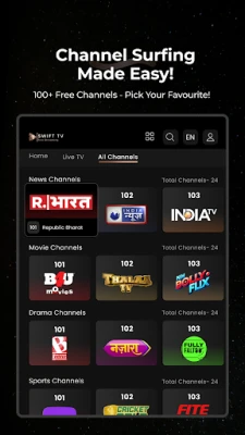 Experience unlimited entertainment with Swift TV, your go-to Free Live TV app! Stream a diverse range of channels and shows across multiple genres—all at your fingertips. No cables, no subscriptions, just endless fun!
