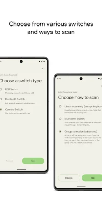 Switch Access will scan the items on your screen and highlight each one until you make a selection. You can choose from a variety of switches, including physical switches like buttons or keyboards, on-device switches like volume buttons, and even camera switches that use facial gestures.
