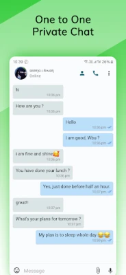- One-to-One Chat: Connect privately with friends and family through secure,