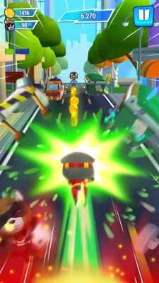 Dive into a world of endless excitement and high-speed action with Talking Tom Hero Dash! Dash through vibrant cities, ancient temples, scorching deserts, and icy mountains. Leap over obstacles, dodge buses, and collect gold coins and tokens to help restore peace and order.