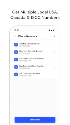 1. Unified Communication: Seamlessly manage all your contacts in one intuitive app, featuring local area codes for USA, UK, and Canada, toll-free numbers, and more!