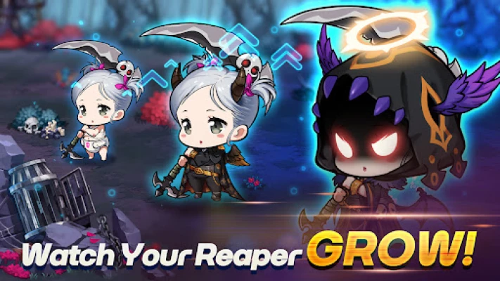 As you level up, your Reaper will visually evolve from a crawling infant to a fearsome warrior. Can you raise your baby Reaper to become the ultimate grim reaper?