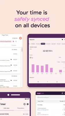 Your time is safe with us - phone, desktop or web, your time is seamlessly synced and kept safe between all of your devices.