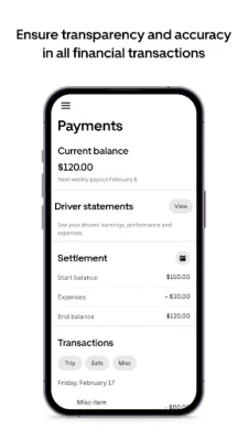 - Receive comprehensive breakdowns of driver earnings for timely and accurate payments for both you and your drivers.