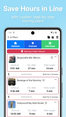 -Customized step-by-step touring plans for both Universal Studios Florida and Islands of Adventure parks, including The Wizarding World of Harry Potter areas of each park. You tell LINES which rides you want to see, and LINES will create a step-by-step itinerary showing when to go to each ride to avoid long lines. You can even change your plans while you’re in the park!