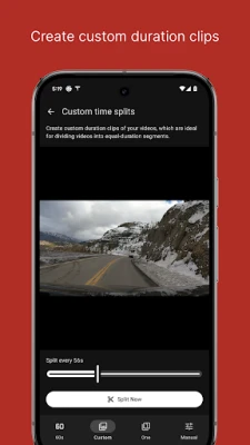 - Completely free without any ads and no user data is collected. - Split your videos seamlessly into 60 seconds or custom splits for WhatsApp and other social media platforms. - Split videos into custom duration clips according to your preference. - Extract one clip from the video based on your desired start and end times. - Manual mode to split videos at desired positions. - Easy to select single or multiple videos from library and share them. - Mesmerizing Dark and Light themes. - Modern "Material You" themes for a fresh look All product and company names are trademarks™ or registered® trademarks of their respective holders. Use of them does not imply any affiliation with or endorsement by them.
