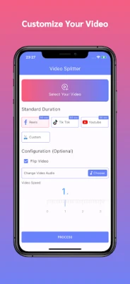 Video Splitter makes it easy to set standard durations for popular social media platforms like Instagram, TikTok, and YouTube. No more guessing or trial and error, simply select the platform and let Video Splitter do the rest. And for those who want more control, the app also offers custom duration options to fit your specific needs and preferences.