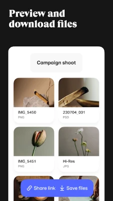 Navigating the app is a breeze. Share files with a link in your favorite messaging app or send files using a download link in an email. Our intuitive interface guides you through the process, making sharing large files, videos, and photos a walk in the park. You can also check the download status, forward and delete transfers, and get notified the minute you receive something so you can download or preview your files wherever you are.