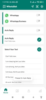 This user-friendly app has easy-to-use interfaces. Automatically respond to custom-received WhatsApp or WA Business notification messages with this bot. You will have a lot of settings to customize each auto reply for your needs. Download now for free!