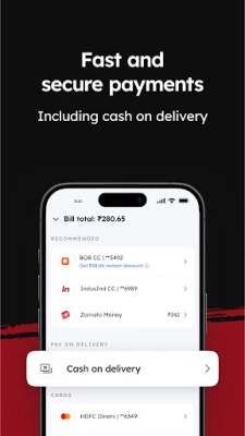 Pay for your food safely and securely with UPI, cash on delivery, or various cards, wallets, and net banking options. Plus, you can score up to 60% off or even a free dish.